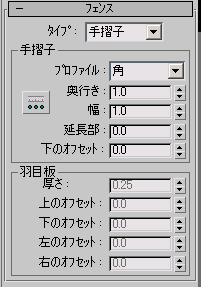 3ds Max では、既定値で、2 つの親柱を持つ上のレール、レールの高さの半分の位置に下のレール、等間隔に配置された 2 つの手摺子がそれぞれ作成されます。