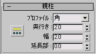 親柱のプロファイル、奥行き、幅、親柱の間隔を設定します。親柱の数は、[親柱の間隔](Post Spacing)ボタンを使用して設定します。