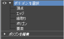 - オブジェクト内の連続するポリゴンがすべて選択されます。領域選択でも、同じポリゴンが選択されます。