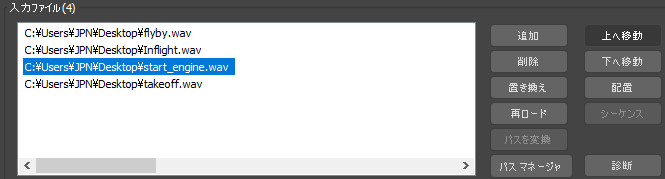 [入力ファイル](Input Files)領域にファイルが一覧表示されます。必須ではありませんが、ファイルをサウンド トラックの再生順に並べておくと後で作業がやりやすくなります。