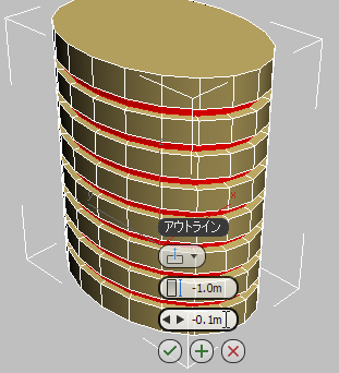 円柱の詳細の作成: 窓をベベルする: