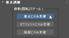[基点調整](Adjust Pivot)ロールアウトで[基点にのみ影響](Affect Pivot Only)をクリックして再びオフにします。