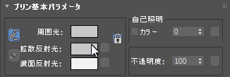 注: 既定では[拡散反射光](Diffuse)と[周囲光](Ambient)の値はロックされているので、拡散反射光カラーが同じ暗い色に変更されます。