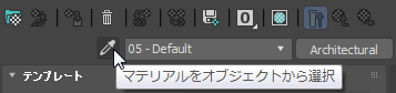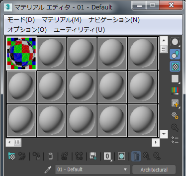 既定では、マテリアル エディタのマテリアルはアーキテクチュラル タイプになっています。このマテリアルを標準タイプに変更します。