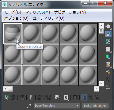 コンパクト マテリアル エディタの最初のサンプル スロットにドアのマテリアルが表示されます。