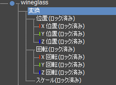 [変換](Transform)トラックと、そのすべての子トラックのロックが解除されます。これで、必要に応じてワイン グラスを変換できるようになりました。