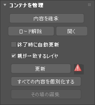 継承されたコンテナが開いているか閉じているかによって、[修正](Modify)パネルに[ローカル内容](Local Content)ロールアウトまたは[継承済み内容](Inherited Content)ロールアウトのいずれかが表示されます。両方が表示されることはありません。