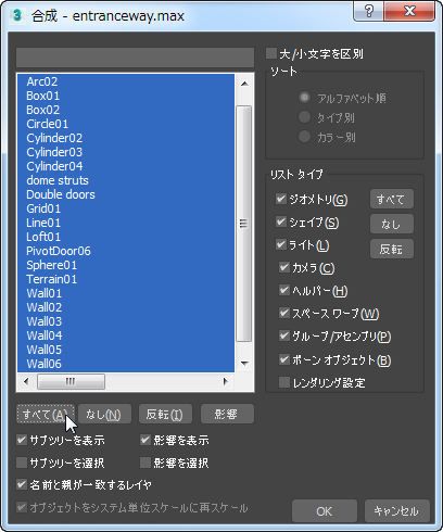 [重複したマテリアル名](Duplicate Name)ダイアログ ボックスが表示されたら、すべての重複したオブジェクトについて[スキップ] (Skip)をクリックします。