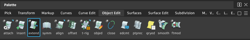 新しいジオメトリを追加して、カーブまたはサーフェスを現在のエンドポイントまたはエッジから延長します。
