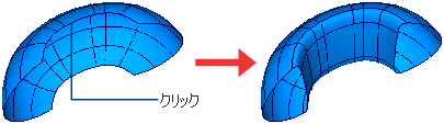 U または V アイソパラメトリック カーブあるいはエッジをクリックし、その次元を横断するサーフェスを開いたり、閉じたりします。