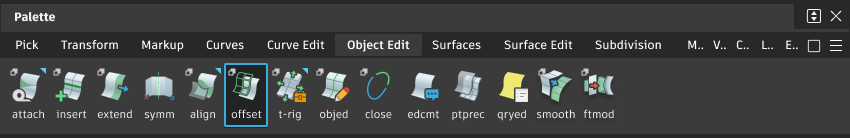 を左右にドラッグして、オフセット距離を変更します。Shift キーを押しながらその他のカーブをクリックするか、ピック ボックスを使用して、それらのカーブを選択(または選択解除)します。Offset ボタンをクリックします。