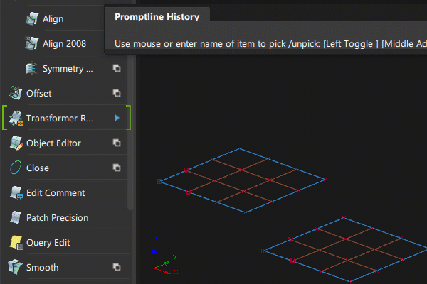 Query Edit ツールは両端のコンストラクション ヒストリを取得するので、上に表示される Activate ラベルをクリックして、両端の位置合わせを編集することができます。