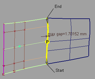 サーフェスが位置合わせされているときには、Partial チェックボックスは既定で必ずオフになっています。初期状態では、入力サーフェスのエッジはマスタのエッジの範囲いっぱいに位置合わせされています。Partial をオンにすると、マスタサーフェスのエッジ(またはカーブ)上で最も近いポイントが使用されます。
