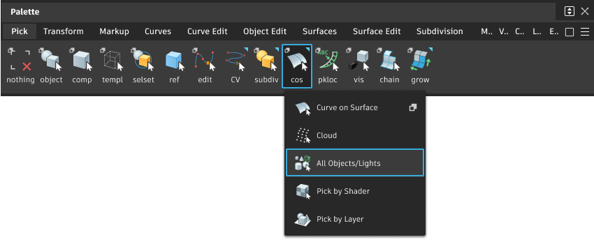 シーンのすべてのオブジェクトを選択または選択解除します。このツールは、ジオメトリ、オブジェクト グループ、ライトなど、シーン内のすべてのオブジェクト タイプを選択する場合に使用します。