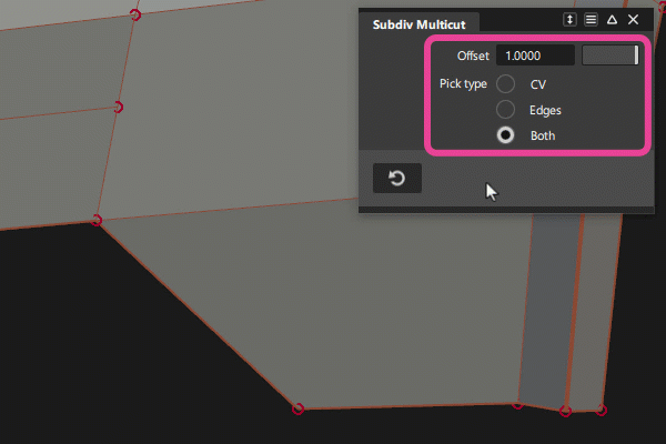 コントロール ウィンドウで、カットの Pick Type を選択します。