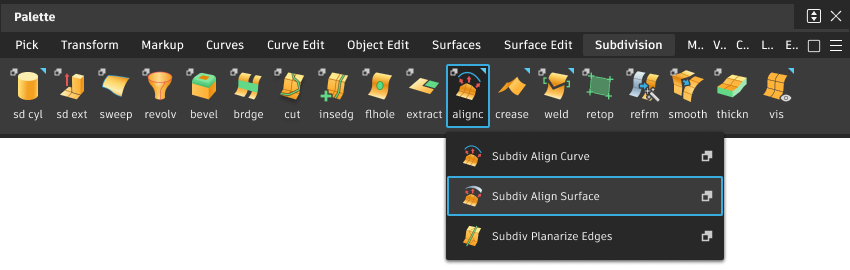 サブディビジョン オブジェクトの選択した CV および関連するエッジを NURBS サーフェスに位置合わせします。このツールは、NURBS サーフェスを使用して選択した CV をスムージングまたは修正する場合に使用します。
