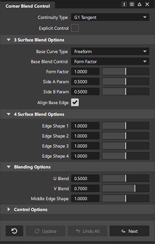 これらのオプションは、4 つのサーフェスのコーナー ブレンドを作成するときに表示されます。