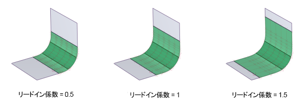 Lead-In の値の調整に応じて、Form Factor と Arc Range の値を自動的に設定して最適なシェイプを生成します。これにより、この 3 つの設定を定期的に調整しなくても、最適なフィレット形状と曲率コームをすばやく作成できます。