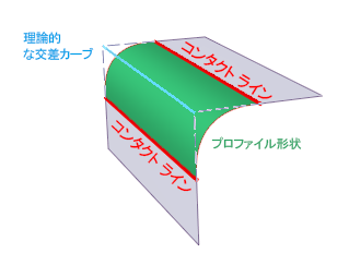 次の 3 つのオプションで、コンタクト ラインの位置を指定します。プロファイル シェイプは、サーフェス フィレット ツールによって計算されます。