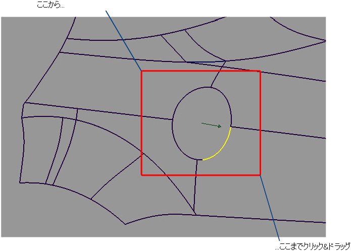 選択するエッジの残りの部分をピック ボックスで囲んで選択します。