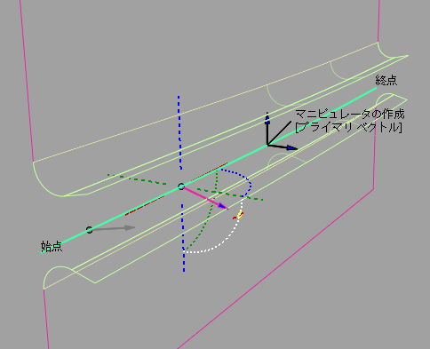 プライマリまたはセカンダリ ベクトルをクリックすると、X、Y、Z 回転用の円弧、X、Y、Z に沿った位置合わせのための軸、およびすべての方向の拘束されない動作のための小さい円など、すべてのマニピュレータ コントロールが表示されます。