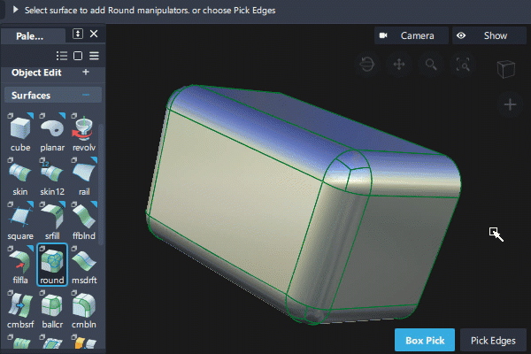 Pick Edges: クリックすると、丸みを付けるのに使用するエッジを個別に選択できます。
