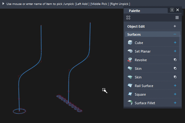 さらにモデリングを続ける場合は、Object Edit > Detach を使用して、生成されたサーフェスを切れ目の鋭い位置で分割することをお勧めします。