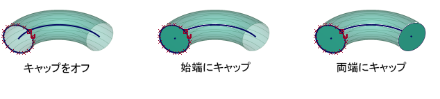 プロファイル形状が単一の閉じたプラナー カーブである場合にのみ、キャップはサーフェスの両端に作成されます。