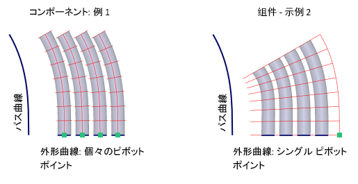 Tube: プロファイル カーブがパスに沿ってスイープするとき、プロファイル カーブのピボット ポイントはパス カーブと同じ角度を維持します。