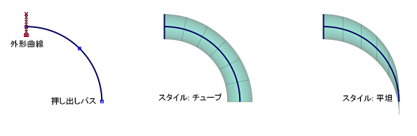 パス カーブの始点または終点にプロファイル カーブを配置すると、最も予想に近い結果が得られます。