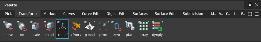 Universal Transform ツール マニピュレータを表示します。このマニピュレータを使用して、CV などの選択したオブジェクトまたはオブジェクト コンポーネントを移動、スケーリング、回転することができます。