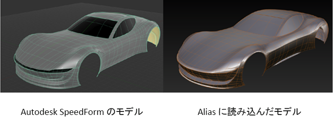 SpeedForm の T スプライン サーフェスをサブディビジョン ボティとして、SF3D ファイルから直接 Alias に読み込めるようになりました。これにより、Alias に読み込む前に T スプライン モデルを OBJ に変換する必要がなくなりました。
