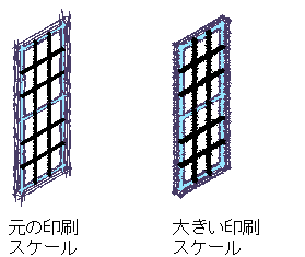 目標印刷尺度を指定して、スケッチ セグメントと延長のサイズをコントロールすることができます。 最終的なスケッチで、スケッチ セグメントと延長のサイズを拡大するには、大きめの尺度を選択します。