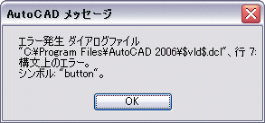 [OK]をクリックして、メッセージを閉じます。Visual LISP は、さらに次のようなエラー メッセージを表示することもあります。