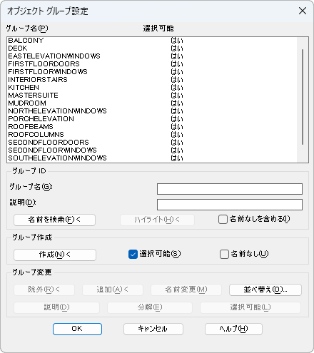 CLASSICGROUP[旧オブジェクト グループ設定] (コマンド) 検索