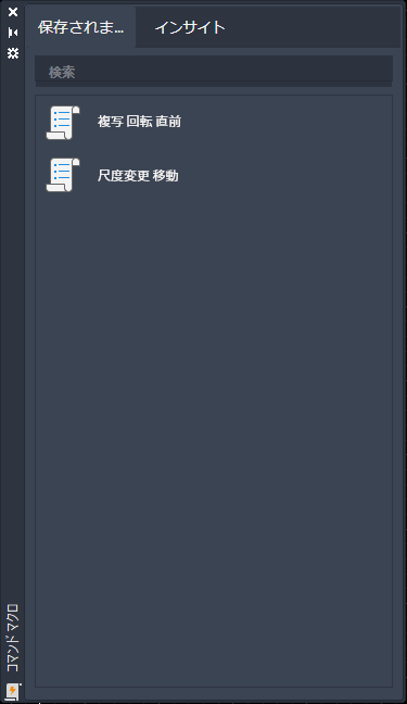 [インサイト]タブで以前に保存したコマンド マクロのリスト。