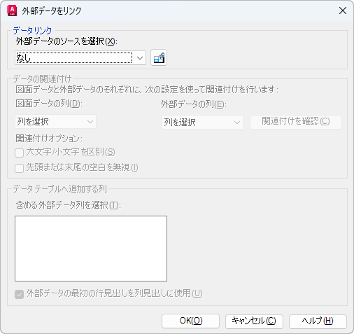 スプレッドシートに表示される順序で列名が表示されます。データの関連付けを行うと、選択した列のデータが図面データにリンクされます。