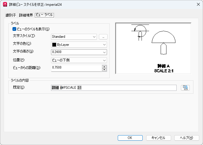 詳細ビュー ラベルに使用する文字スタイルを指定します。