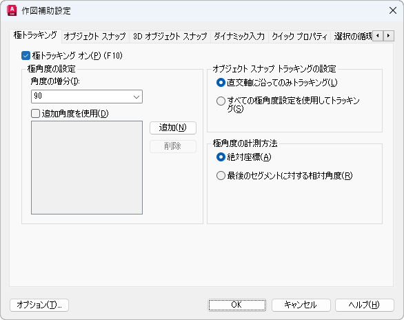 [極トラッキング]タブ([作図補助設定]ダイアログ ボックス)