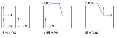 オプションを入力 [表示(ON)/非表示(OF)/すべて(A)/非原点(N)/原点(OR)/選択可能(S)/プロパティ(P)] <現在値>: オプションを入力するか、[Enter]を押します。