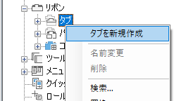 [タブを新規作成]という名前の新しいリボン タブが[タブ]ノードの一番下に表示されます。