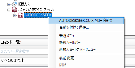 部分 CUIx ファイルがロード解除され、ツリーから除去されます。