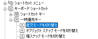 - [カスタマイズ]タブの[ <ファイル名> 内のカスタマイズ]ペインで、[キーボード ショートカット]ノードを選択します。