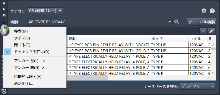 AutoCAD Electrical ツールセット では、パレットを使用して、プロジェクトを管理したり、カタログ データベースの作業を行います。パレットは、他のコマンドを使用している間も画面に表示することができます。したがって、必要なときにいつでもアクセスすることができます。
