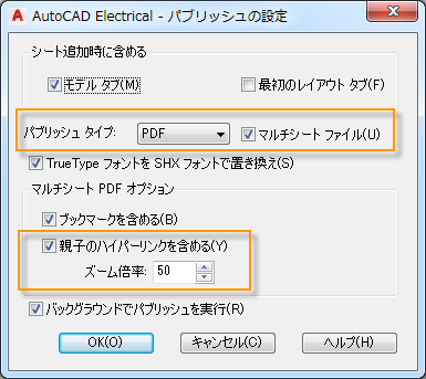 [マルチシート ファイル]および[ハイパーリンクを含める]チェック ボックスをオンにしていることを確認します。