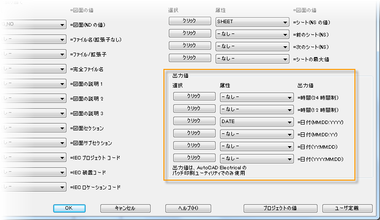 プロジェクト表題欄設定の一部として、印刷の日付と時刻の形式を特定の属性にマッピングすることができます。この属性は、図面の印刷時に自動的に更新されます。