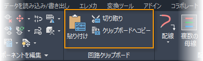 特定の図面から別の図面にコンポーネントおよび配線をコピーするには、[回路クリップボード]のコマンドを使用します。