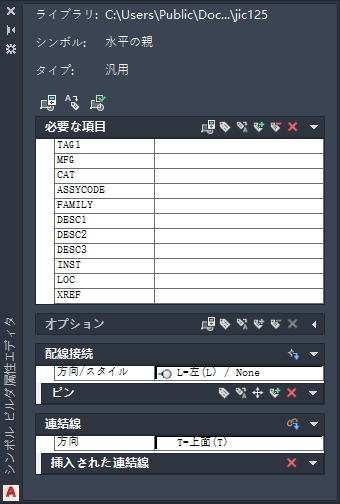 カタログ情報がシンボルに自動的に配置されます。シンボルの挿入直後に表示されるダイアログ ボックスを使用して、シンボルをさらに編集することができます。