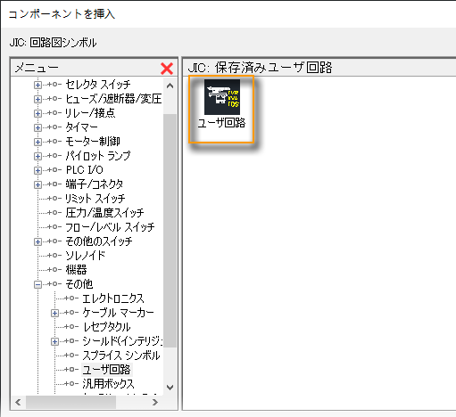 次回、保存した回路が必要なときは、アイコン メニューから挿入します。 検索