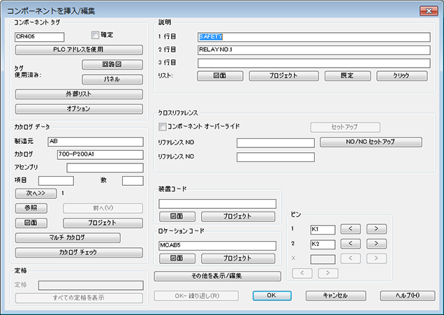 各シンボルには、メイン カタログ値および「マルチ カタログ」値と呼ばれる番号を割り当てることができます。AutoCAD Electrical ツールセットカタログ割り当てを追加、編集、削除するには、コンポーネントを編集します。